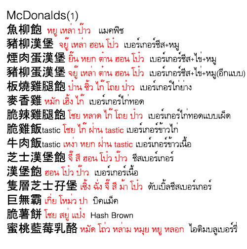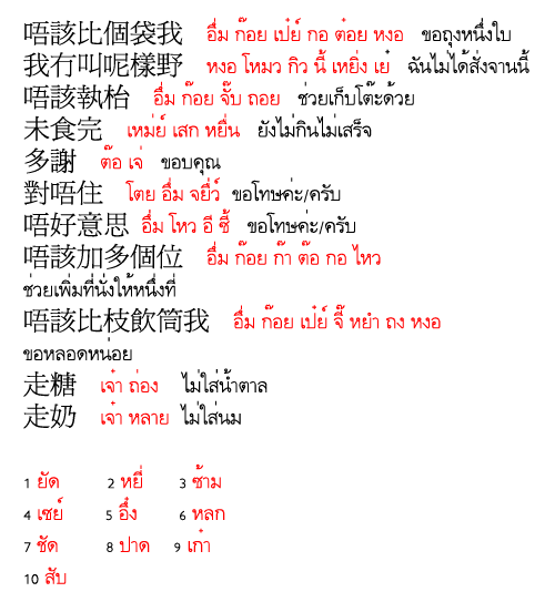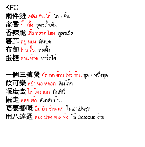 รายการอาหารภาษาฮ่องกง เอาไว้ใช้สั่งอาหาร