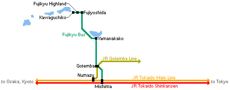 From Tokyo By bus Take Keio bus for Kawaguchiko sta from JR Shinjuku sta west exit (on the other side of Keio dept) Tavel hours - 1 hour 50 min , Costs 1700 yen (most recommended for everybody) The last bus leaves at Shinjuku 17:10 to arrive in Kawaguchiko before 19:30.