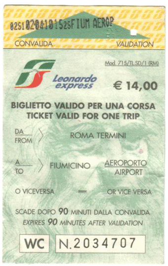 Sitabus จากสถานี termini ไปยังสนามบิน ราคา 8 ยูโรค่ะ
