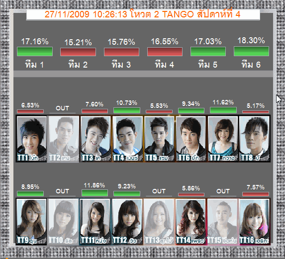 +++ รายงานสด 2 TANGO วันศุกร์ที่ 27 พฤศจิกายน 2552 เวลา 12.41 น. (Week 4) +++{{แตกประเด็นจาก C8590577}