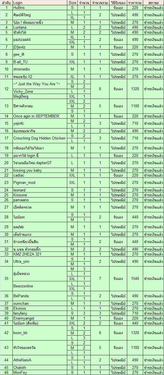 ------------------------------------------ 000 - ชายผู้ถูกสาป -:- เต้-:- 001 - pumin_minho -:- ชมพู่ -:- 002 - monkeylink -:- เจี๊ยบ -:- 003 - alonso14 004 - i_loverain -:- kook -:- 005 - i-cotton -:- ฝ้าย -:- 006 - โอบ๊อท -:- อุ้ม-:- 007 - onakawa -:- Jack -:- 008 - so four -:- Top -:- 009 - Shisuru -:- Mote -:- 010 - Grmsm 011 - Gallardo 012 - -^zippomaru^ -:- ออม -:- 013 - ....แด่หัวใจ ที่ไร้คำพูด.... -:- ปุณ -:- 014 - Serefim -:- เซ -:- 015 - มานีดีใจได้ขึ้นป.4 016 - pimpimento -:- พิม -:- 017 - rabbitkung -:- อ้อม -:- 018 - patyawi -:- ท็อป -:- 019 - cadiac -:- เต๋า -:- 020 - หลินจง -:- โต้ง -:- 021 - ChokottoLOVE -:- ส้ม -:- 022 - Micronesia -:- ไกด์ -:- 023 - nnhunter -:- หนูแนน -:- 024 - tai shi 66 -:- ต่าย -:- 025 - (^-^ ) นายตูดหมึก ( ^-^)/-:- เจี๊ยบ-:- 026 - หนูติดละคร -:- Nan -:- 027 - 7SuNZ -:- ซัน -:- 028 - มะขามป้อมคุง -:- เซิน -:- 029 - หงส์เดียวดาย-:- บอย-:- 030 - Peary Heon -:- ดีด้า -:- 031 - blacksmith -:- นิว -:- 032 - burinka -:- อาม -:- 033 - SamuDi Knight -:- โบม -:- 034 - Xabi alonso -:- เอิร์ธ -:- 035 - Le Rin -:- Rin -:- 036 - godter 037 - pamaano -:- แอ้น -:- 038 - Enemyangel ฺ ฺ -:- เบิร์ท -:- 039 - Auntie_ApartmenT -:- คอนโด -:- 040 - TA e M i n Z .. J A I -:- ตามใจ -:- 041 - พื้นผนังหลังบัวที่ฐานปัทม์ -:- ปัทม์ -:- 042 - เด็กปิดทอง 043 - เจ้าชายจอมพลัง -:- แมค -:- 044 - fayossy -:- ฝ้าย -:- 045 - เด็นร้านแกง -:- กานต์ -:- 046 - ท้องฟ้าสีชมพูคู่กับทะเลสีขาว -:- เล็ก -:- 047 - Mustadio -:- โม่ -:- 048 - meridaman -:- หนึ่ง -:- 049 - song_inno 050 - Nunow -:- มะนาว -:- 051 - kewkaw -:- เสม(เกษม) -:- 052 - BaretiE~ 053 - เสาร์หรรษา 054 - passpass -:- กิ่ง 055 - ลูกหมูสีฟ้า -:- มุก 056 - หน้าต่างมีหูประตูมีช่อง -:- นัท 057 - วิญญาณสีเงิน -:- กินจัง ,มิ้นท์ 058 - Warning_sica -:- ว่าน 059 - Chaloth -:- เบส 060 - - แมวน้อยหน้าขาว - -:- แมวน้อย 061 - จอมเวทย์ตะวันออก 062 - typhoon no.29 063 - เซียวเล้ง -:- ต้อม 064 - ASDF 065 - Pigman_mod -:- มด 066 - Ishimaru Takumi -:- เอ๋ 067 - คนดีอยู่ที่ไหน -:- แนน 068 - iceja -:- อิ๋ว 069 - monkeypim -:- พิมพ์ 070 - ปลาคราฟหลากสี -:- ดิว 071 - ~* Just the Way You Are *~ -:- เบญ 072 - fanyfany-:-หน่อย-:- 073 - ^^Pinaster^^ -:- พิณ 074 - koy_ku -:- ก้อย 075 - Saniza -:- อ๊อฟ 076 - jackypolo -:- kan 077 - mountainfox -:- โจ 078 - เมมนู๋...มู๋..n.a.m.e 079 - love_sasi -:- ศศิ 080 - ออนนี -:- จ๋า 081 - todtiti -:- ต็อด 082 - เชฟบ๊ะ -:- เชฟบ๊ะ 083 - M-A-S-C-H-E-R-A-N-O -:- เต้ 084 - blaster -:- Heart 085 - ตู้เย็นหลวง -:- หนึ่ง 086 - j_manop -:- หนุ่ม 087 - Teta -:- แม้ว 088 - Thousand Master -:- บอย 089 - gemmy_stone -:- ณิ 090 - ซาราง 091 - รอดูบอล -:- พั้นช 092 - ple_ja -:- เปิ้ล 093 - whiz,,ty* -:- เตย 094 - Katuk -:- ตั๊ก 095 - Dojo-mAn -:- ปอ 096 - <<~Seven~Days~Ago~>> -:- นิค 097 - นายขนม -:- แพมๆ 098 - HuBris -:- เมี่ยว 099 - Mr.BlackSmith -:- เบิร์ด 100 - Neoracle -:- พช 101 - Keiropi -:- keiro 102 - shiningshinee -:- แนท 103 - leonard -:- จ้าว 104 - zerbirass -:- อ้อย 105 - M_Freedom -:- เอ็ม 106 - Beerzonline -:- beer 107 - AtheNasiA-:- DoY 108 - อุนจิโกะ -:- จิ๋ว 109 - kissune -:- อ้อ 110 - Once again in SEPTEMBER 111 - stealart -:- แป้ง 112 - I'm so in love with my angel -:- มายด์ 113 - ปีศาจตัวกลม -:- ตั๊ก 114 - Psychosis Lonatic -:- เน 115 - azu_mint_xxx -:- กร 116 - knompang -:- ปาย 117 - Clash04 118 - ปิ่นจ้า.. -:- ปิ่น 119 - KimETarn 120 - jatt_JA+ -:- จ๋า 121 - Lovepeaces -:-เจน 122 - stick con voi per sempre* -:- khate 123 - ลิงปังปัง -:- ปอน 124 - Stamp45 -:- Stamp [Tamp] 125 - merkin -:- นุ่น 126 - -=-Tobiz-=- -:- Tobi 127 - ปลาปิ้งคะ -:- ปลา 128 - NC-BOY -:- กู๊ด 129 - N_L_M -:- นัท 130 - Arsaphes -:- ติ้ม 131 - T - CORP. -:- TON 132 - BecKNiTeZz -:- นก 133 - Enjoysweet -:- หวาน 134 - จัดหนัก -:- โอ๊ค 135 - กระดาษสีขาว ปากกาชมพู -:- มิ้น 136 - ~OtaKuคุง~ -:- โอตาคุ 137 - มดตะนอย - : - ชีส 138 - osmanth_us 139 - ระหว่างเรา -:- กอฟ 140 - kornkung -:- กร 141 - MondayCoo! -:- บอน 142 - om_dw -:- ออม 143 - silver2529 -:- เวอร์ 144 - wellease -:- แอม 145 - shivaxshiva -:- เจ๊ก 146 - บูรพาอสูร -:- วิน 147 - peepo_ac -:- ปีโป้ 148 - UltraYim -:- Yim 149 - CoNiC-SeCTioN -:- มิ้น 150 - ข้าวเหนียวปั้นสิบ -:- จาร์, จ๋า 151 - AlphaJR -:- หย่ง 152 - In the name of mys