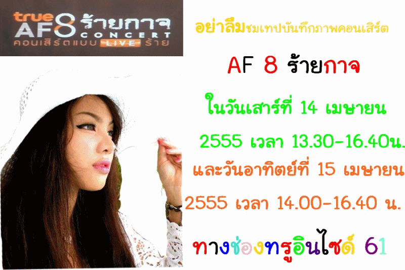 ** เพลงวายร้าย **        http://music.truelife.com/song/709947/%E0%B8%A7%E0%B8%B2%E0%B8%A2%E0%B8%A3%E0%B9%89%E0%B8%B2%E0%B8%A2 เพลง : วายร้าย อัลบั้ม : Ost.Special Force ศิลปิน : หลิน (AF8), แอ้น (AF8), ยูกิ, เหวย เหวย