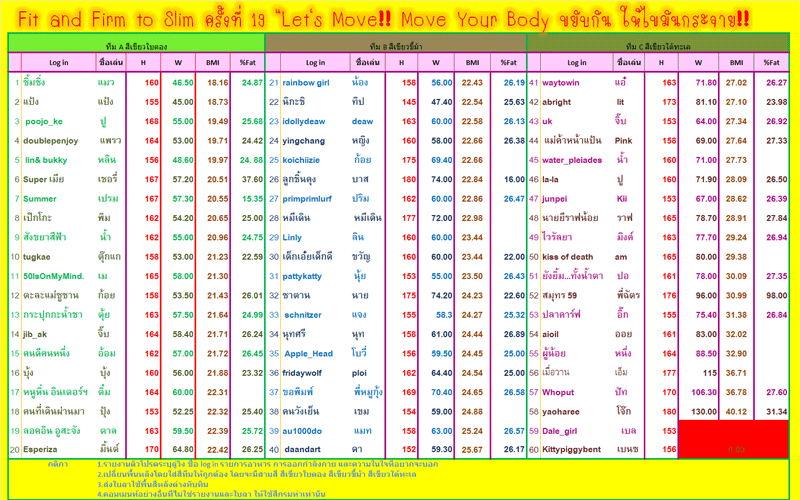 เป้าหมายของเราไม่ใช่ว่าใครลดน้ำหนักได้มากสุดจะเป็นคนเก่ง เราเน้นกันที่วิธีการค่ะ ส่วนการจัดอันดับตอนจบเราทำกันเล่นๆเพื่อเป็นสีสันเฉยๆ