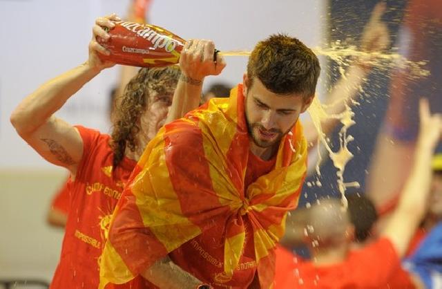 เคราร์ด ปิเก้ ร่วมฉลองชัยชนะของทีมชาติสเปน โดยห่มคลุมร่างกายตนเองด้วยธงชาติ 'คาตาลัน' http://www.bloggang.com/data/m/milansheva/picture/1279213870.jpg
