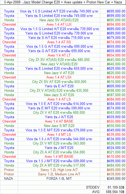 Update ราคาเก๋ง Sub-compact & Compact บ้านเรา - Jazz Model Change, Aveo เพิ่มรุ่นย่อย และน้องใหม่ Proton & Naza