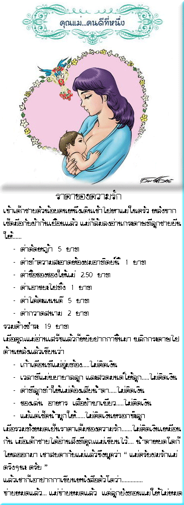 พ่อแม่ก็แก่เฒ่า จำจากเจ้าไม่อยู่นาน จะพบจะพ้องพาน เพียงเสี้ยววารของวันวาน ใจจริงไม่อยากพราก เพราะยังอยากเห็นลูกหลาน แต่ชีพมิทนนาน ย่อมร้าวรานสลายไป ขอเถิดถ้าสงสาร อย่ากล่าวขานให้ช้ำใจ คนแก่ชะแรวัย ผิดเผลอไผลเป็นแน่นอน ไม่รักก็ไม่ว่า เพียงเมตตาช่วยอาทร ให้กินและให้นอน คลายทุกข์ผ่อนพอสุขใจ เมื่อยามเจ้าโกรธขึ้ง ให้นึกถึงเมื่อเยาว์วัย ร้องไห้ยามป่วยไข้ ได้ใครเล่าเฝ้าปลอบปรน เฝ้าเลี้ยงจนเติบใหญ่ แม้เหนื่อยกายก็ยอมทน หวังเพียงจะได้ยล เติบโตจนสง่างาม ขอโทษถ้าทำผิด ขอให้คิดทุกทุกยาม ใจแท้มีแต่ความ หวังติดตามช่วยอวยชัย ต้นไม้ที่ใกล้ฝั่ง มีหรือหวังอยู่นานได้ วันหนึ่งคงล้มไป ทิ้งฝั่งไว้ให้วังเวง
